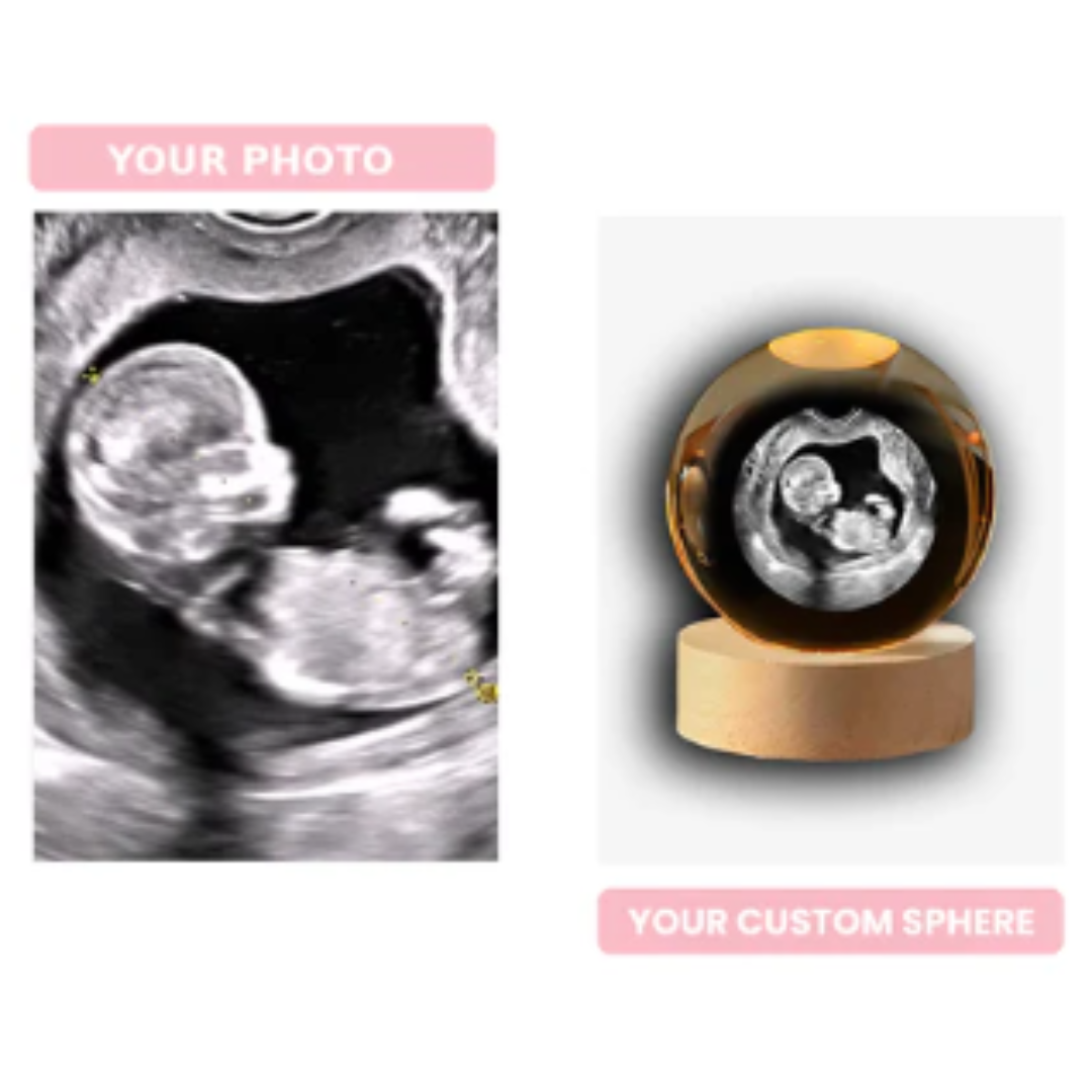 Capture your most precious photo inside a beautifully crafted glass sphere. Whether it's a baby's ultrasound, a loved one's