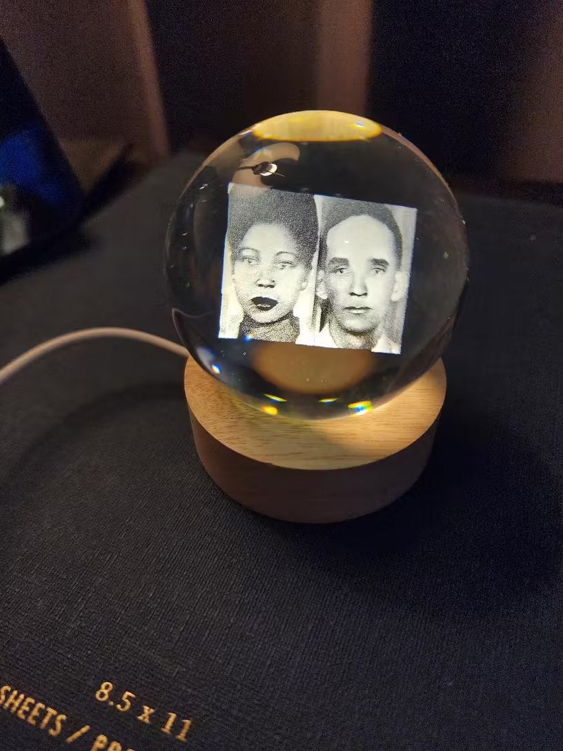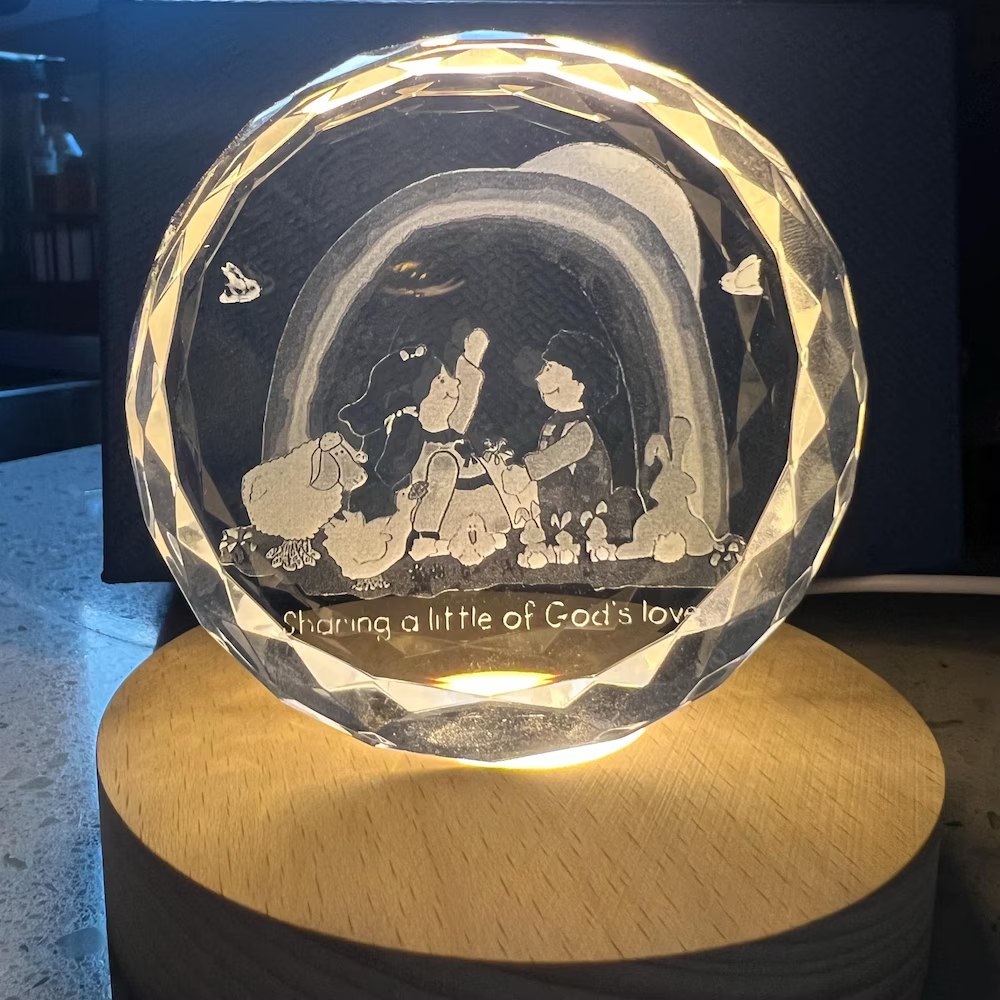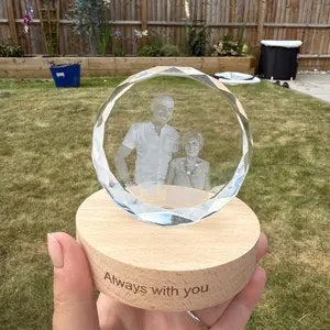 Each crystal globe is laser-engraved with your photo and set on a warm LED base, creating a magical night light that captures love, family, and memories forever. Perfect for couples, parents, pets, or as a heartfelt gift for any occasion.