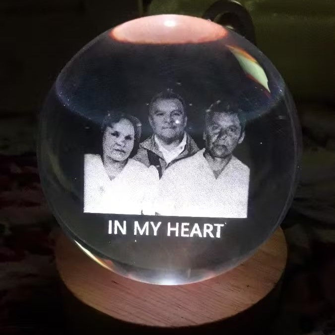 Our team carefully embeds your photo into a beautifully polished crystal glass sphere, turning it into a timeless keepsake.